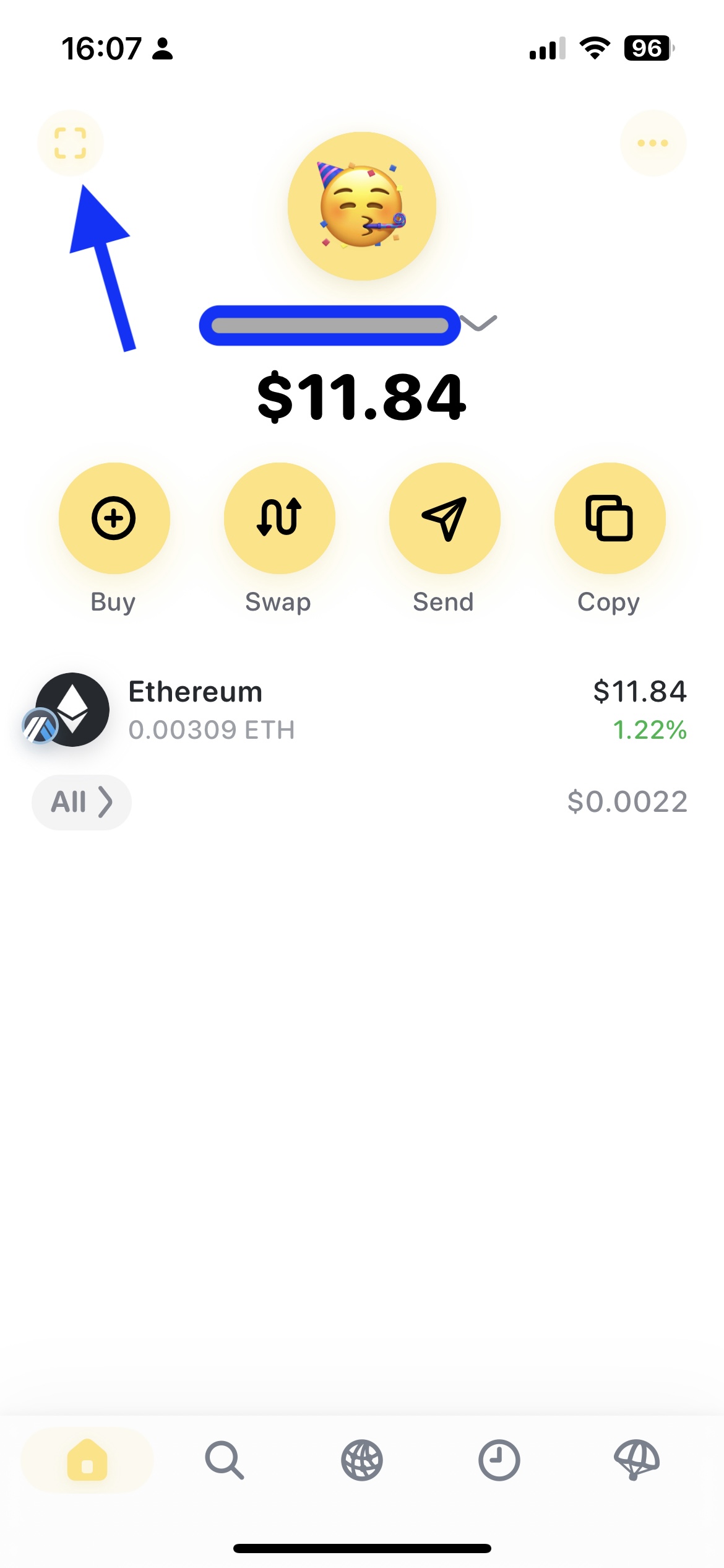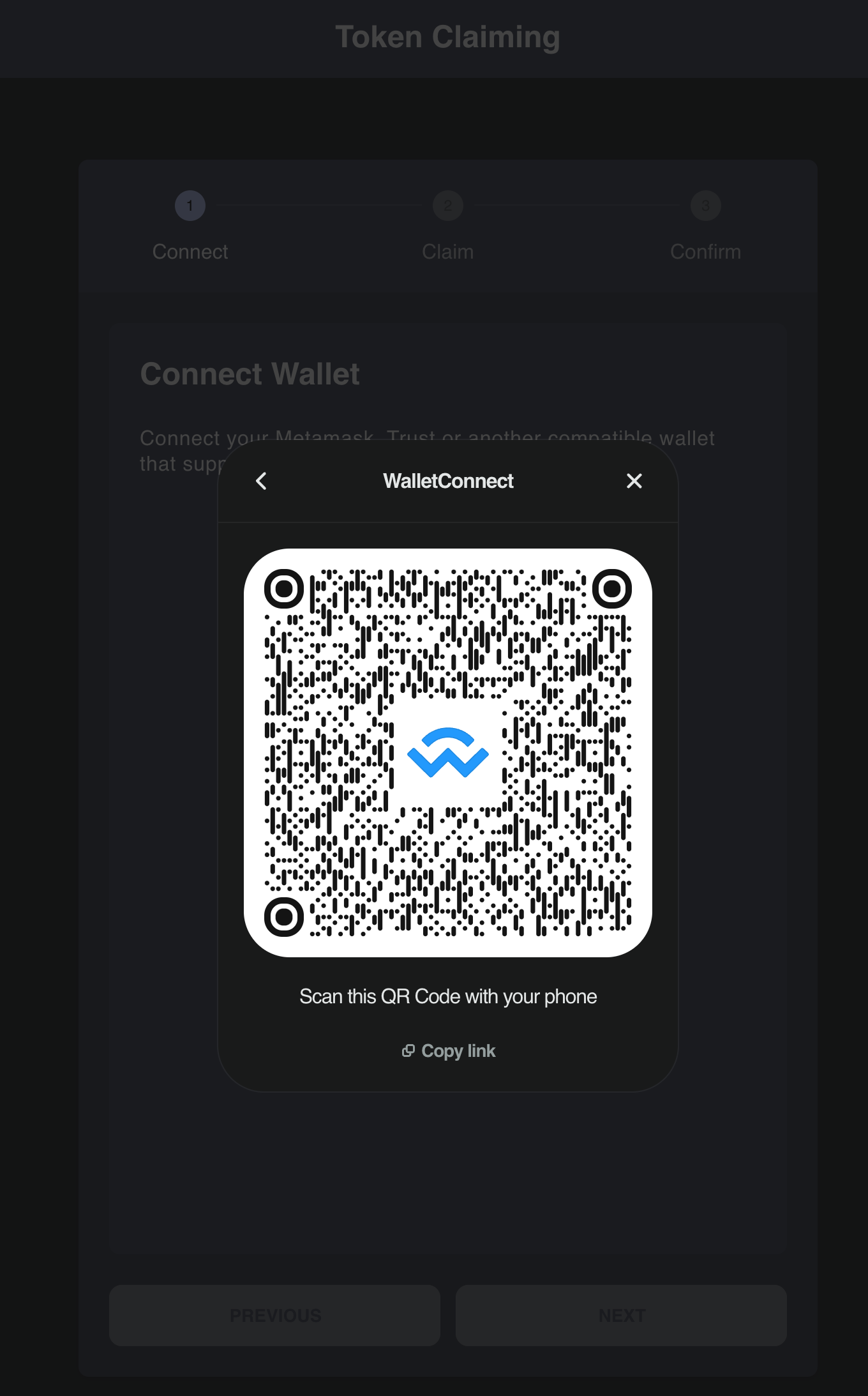 3. Open your mobile wallet and scan the QR code with that wallet in order to connect with it.